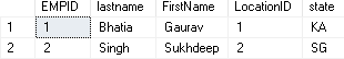 into TBtest values (1,‘Bhatia’,‘Gaurav’,1,‘KA’),(2 ,‘Singh’,‘Sukhdeep’,2,‘SG’)