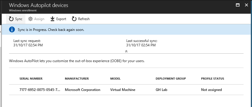 Note: Even though we can create AutoPilot deployment profiles in the Intune portal we cannot add devices right at this time. If we want to use Intune profiles we must add devices to the Microsoft Store for Business and sync to Intune.