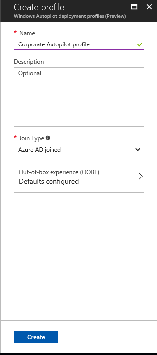 Enter a profile name and choose the join type – Azure AD Joined. Edit the OOBE settings.