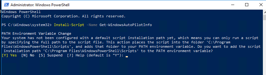 Execute the script: Install-Script -Name Get-WindowsAutoPilotInfo