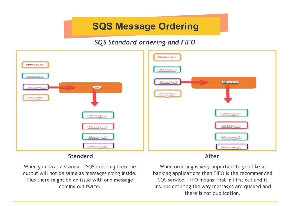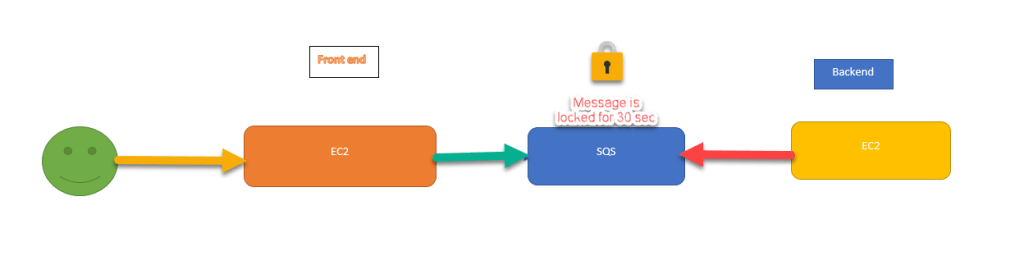 Visibility Timeout: Usually when we have SQS we follow the diagram below, the user will write an order through EC2 instance and place it in the SQS queue, and the backend EC2 will come and retrieve the order from the SQS queue . But when you enable visibility timeout , the message is downloaded by the backend Ec2 and once that is done a lock is placed on the message and it is hidden , till the time SQS receives a confirmation back from the EC2 that the transaction has been completed , once that is done the message is deleted. The benefit of this function is if there is a failure , the message is not lost and the message will re-appear. This function is not enabled by default but we need to enable this function when setting SQS.